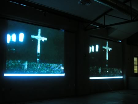 The first year anniversary show of Manipulated Image, For Action’s Sake, considers the confluence of art and politics. Direct and indirect references are made to the role of mass media in the present, and its relationship to Machiavellian and Fascistic politics. A play on words, the title references “art for art’s sake,” the failure of Modernism to fulfill its promise of bringing social change, and the persecution of avant-garde artists by the Nazis and Stalin, as they bore the stigma of the “degenerate” and “unofficial.” For Action’s Sake contrasts autotelic individuals with those driven by external influences such as power and comfort, who in the end are left unfulfilled and alienated.