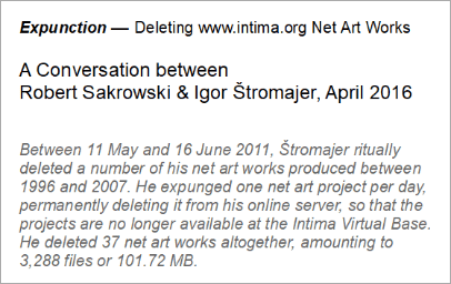 Robert Sakrowski & Igor Štromajer: Expunction / Deleting Net Art Works – A Conversation