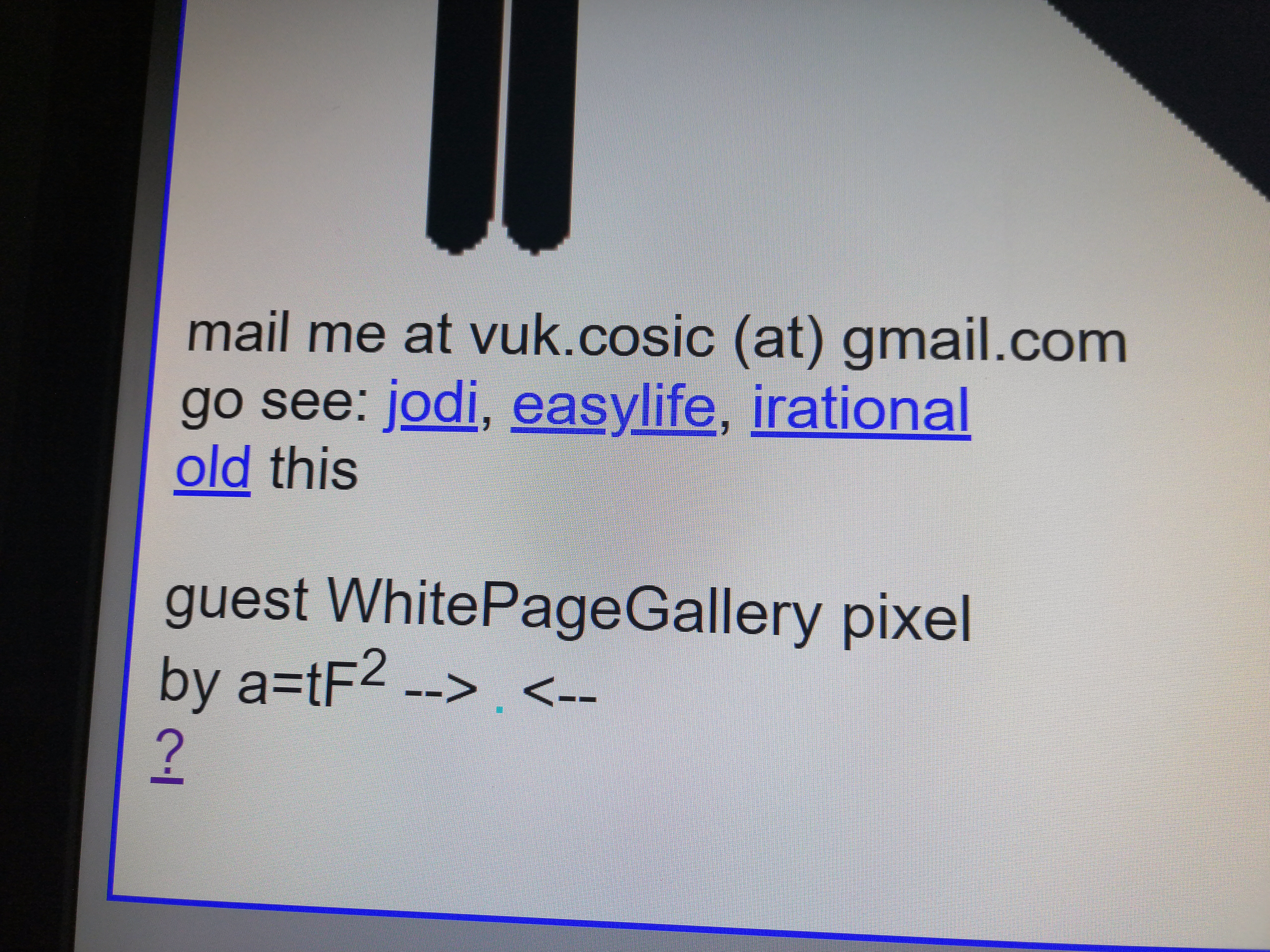 From October 29th to 31st, 2019, Igor Štromajer‘s a=tF² pixel was featured on Vuk Ćosić‘s legendary and historic website