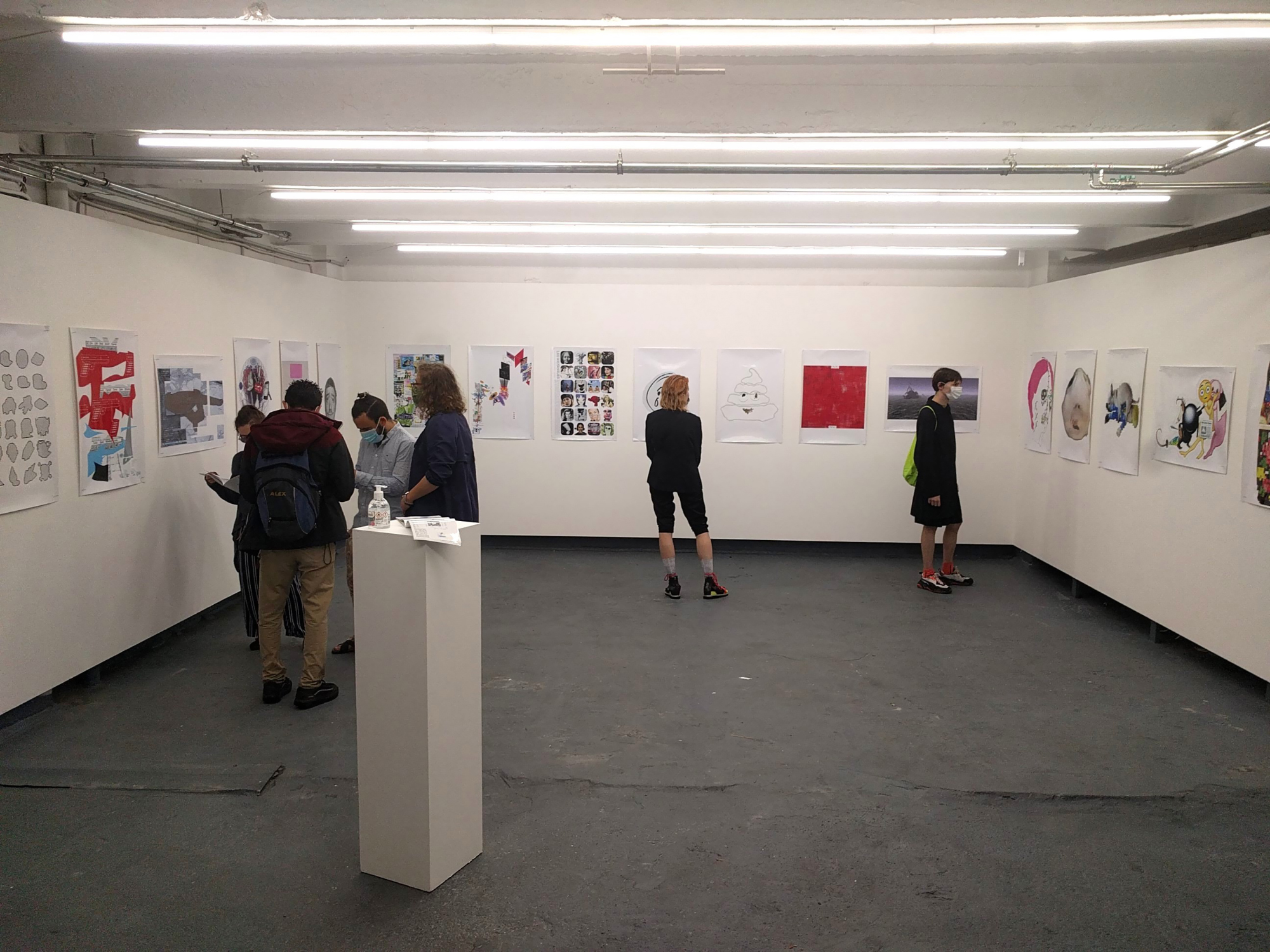 The sets can be collected online, on Telegram, or offline in this scrapbook. The sending and receiving of stickers on Telegram is similar to the pasting and removal of glutinous pictures in the pages to follow. Each sticker can be exchanged and rearranged, animated and interpreted, according to the specific context and the collector’s wishes. Unlike the online Telegram archive, this scrapbook forms a closed collection. Like a Panini album, it sets out in advance what there is to be collected. The album builds the desire to own every single piece, a wish for completion. But the desired entities are scarce. The collector needs to decide precisely which sticker is in- or excluded from the personal collection. Each individual piece must be examined and evaluated, and like the children’s scrapbook, it requires intimate familiarity and inspection. The acts of collecting and exchange, unlike those in the digital realm, touch upon questions of personal property and taste in light of conditions of scarcity. After all, in these pages, you are still very much in a gallery.