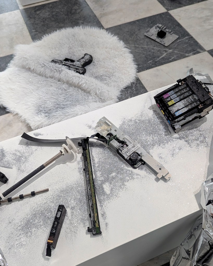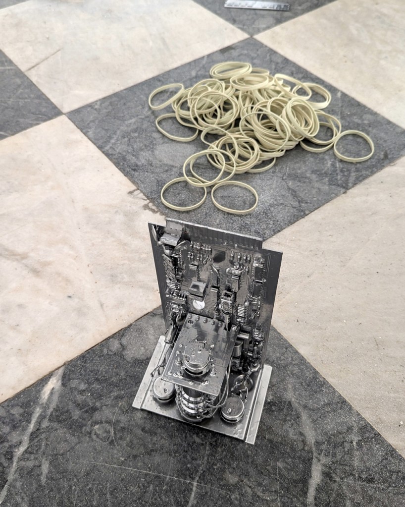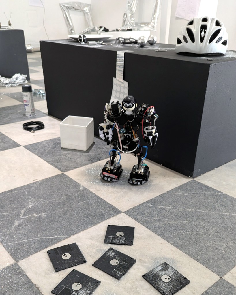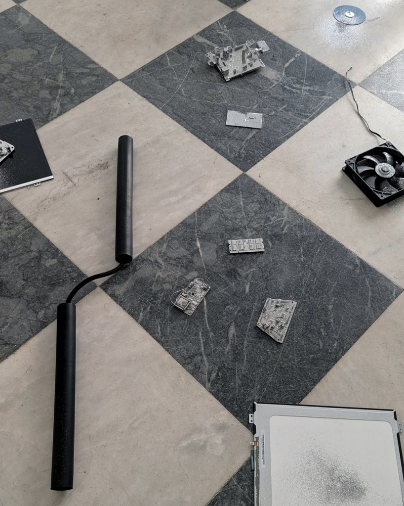 Štromajer exhibits random objects that the electric poet needs for his work, as well as parts of machines and defunct computer equipment that processed the Unicode poems and contributed to the creation of the book. The author’s basic premise is that (para/non)art resides not only in the idea, in the concept, i.e. not only in the nominal and the declared, in itself, but equally in the tools and machines that produce it. The machines that generate it are an indispensable part of it.