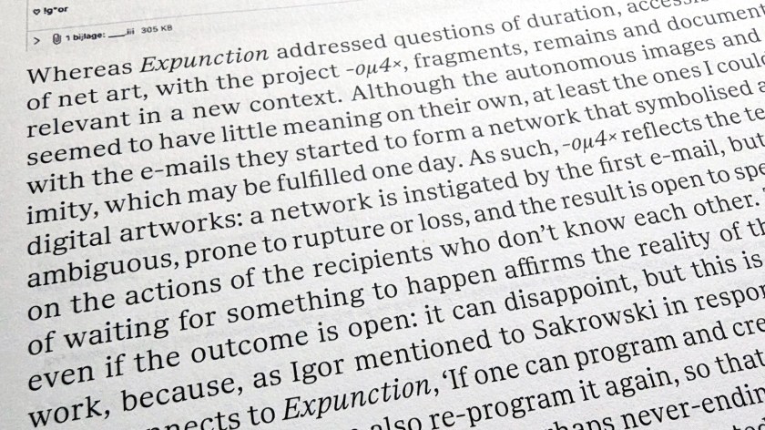 ~ in her text Subject -oµ4× [AD]: An Email Correspondence, Annet Dekker provides an analysis and contextual reading of Igor Štromajer‘s works -oµ4× and Expunction.