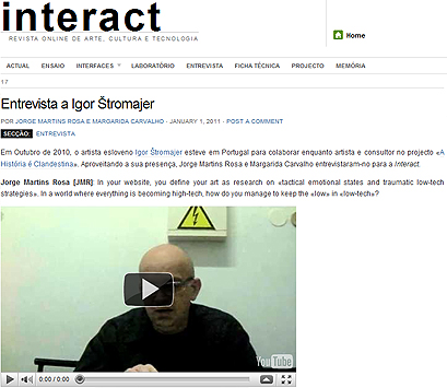 Em Outubro de 2010, o artista esloveno Igor Štromajer esteve em Portugal para colaborar enquanto artista e consultor no projecto “A História é Clandestina”. Aproveitando a sua presença, Jorge Martins Rosa e Margarida Carvalho entrevistaram-no para a Interact.